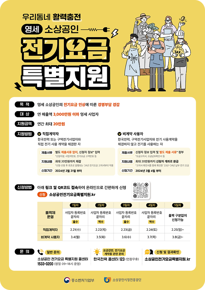 2024 정부는 개인 및 사업자 중 영세 소상공인(연 매출 3,000 만원 이하) 대상 특별지원 사업을 개시 했습니다.